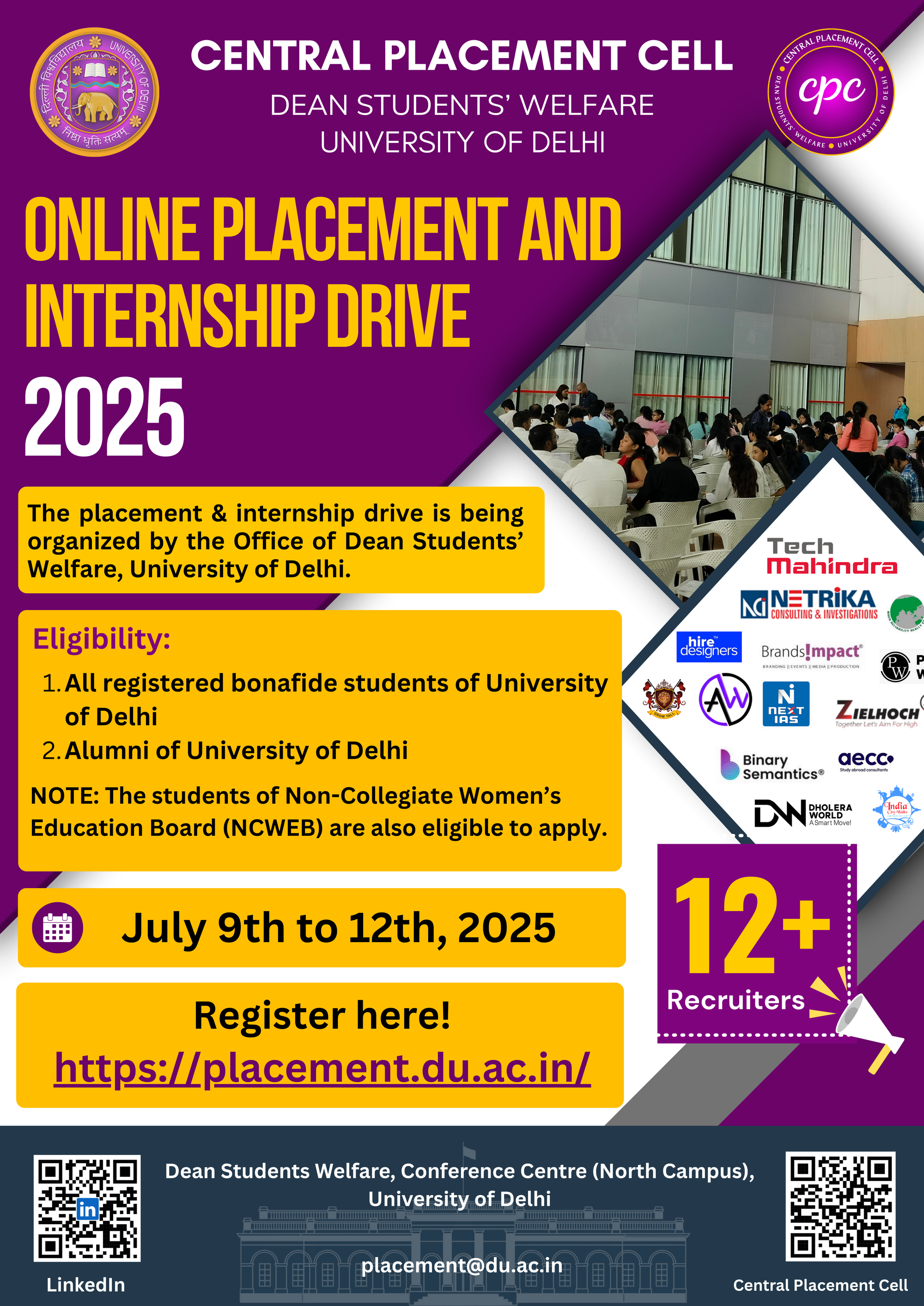 Online Placement & Internship Drive 2025 - Central Placement Cell
