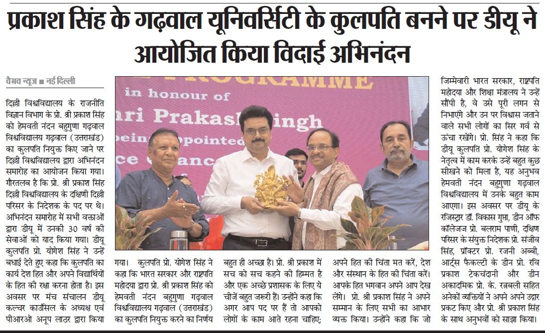 प्रकाश सिंह के गढ़वाल यूनिवर्सिटी के कुलपति बनने पर डीयू ने आयोजित किया विदाई अभिनंदन